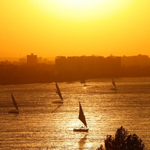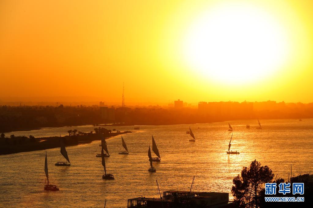 当日,日落时分的开罗沐浴在金色的阳光中,扬帆的小船航行在金色的尼罗河上,景色和谐优美。新华社记者 隋先凯 摄