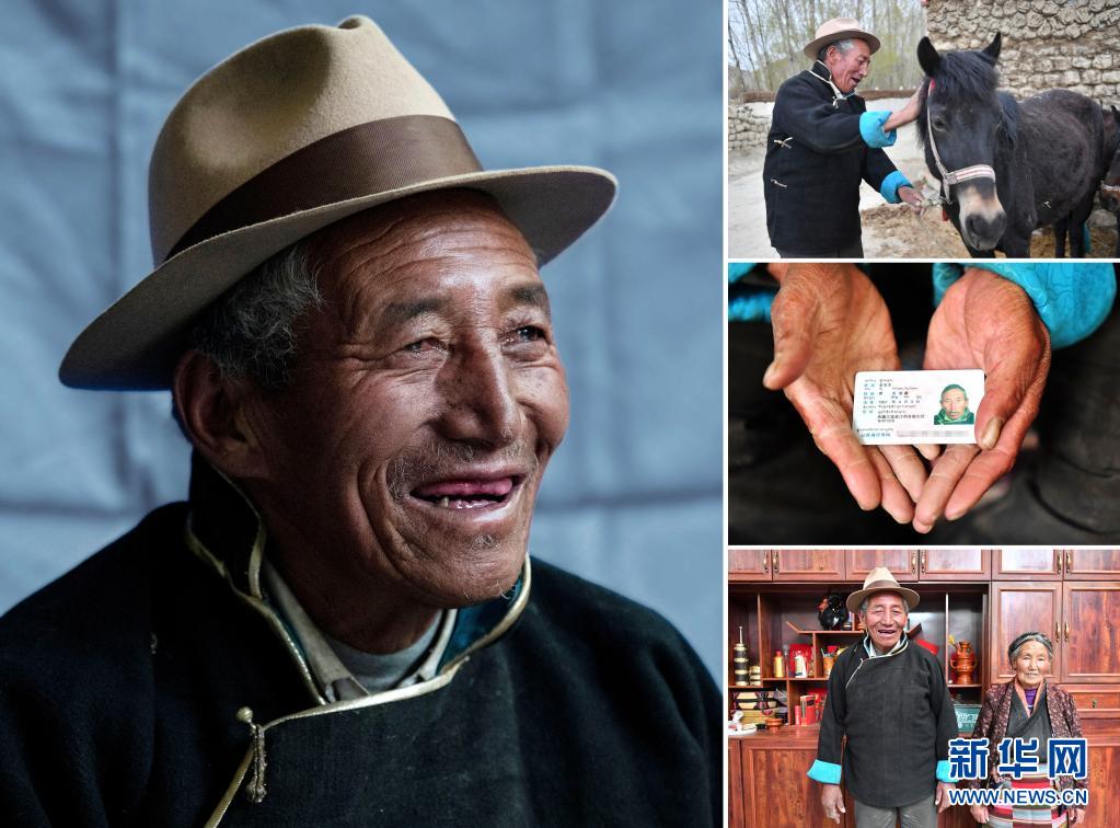 右中:多布杰老人的身份证(5月10日摄)。
