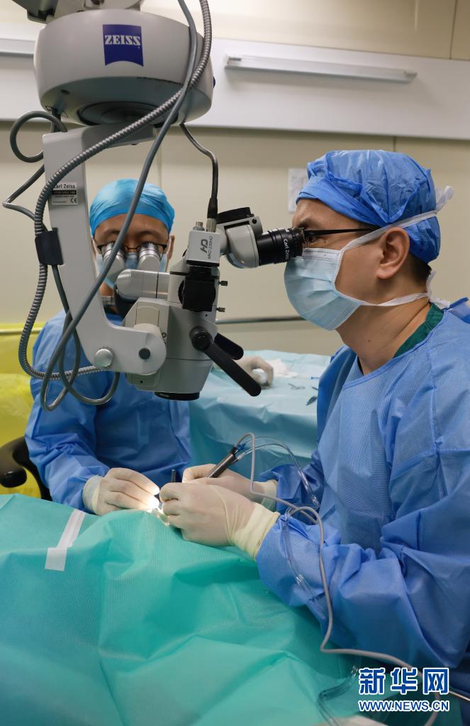 北京协和医院眼科医生赵潺(右)在进行手术(6月17日摄)。