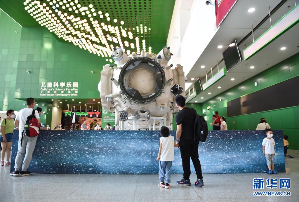 6月19日,不少家长带着孩子来到位于北京市朝阳区的中国科学技术馆,参观“天和核心舱”结构验证件实物,了解中国空间站相关知识。新华社记者 陈钟昊 摄