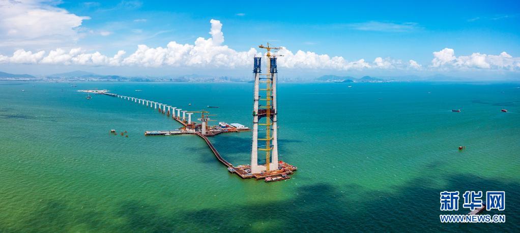 深中通道伶仃洋大桥东索塔(6月16日摄,无人机照片)。