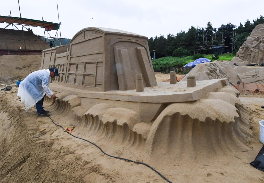 从5月下旬开始,第二十二届中国舟山国际沙雕节沙雕群组作品在浙江省舟山市朱家尖南沙景区开始雕刻。20余名艺术家创作的60余座沙雕作品将于6月下旬全部完成。