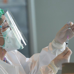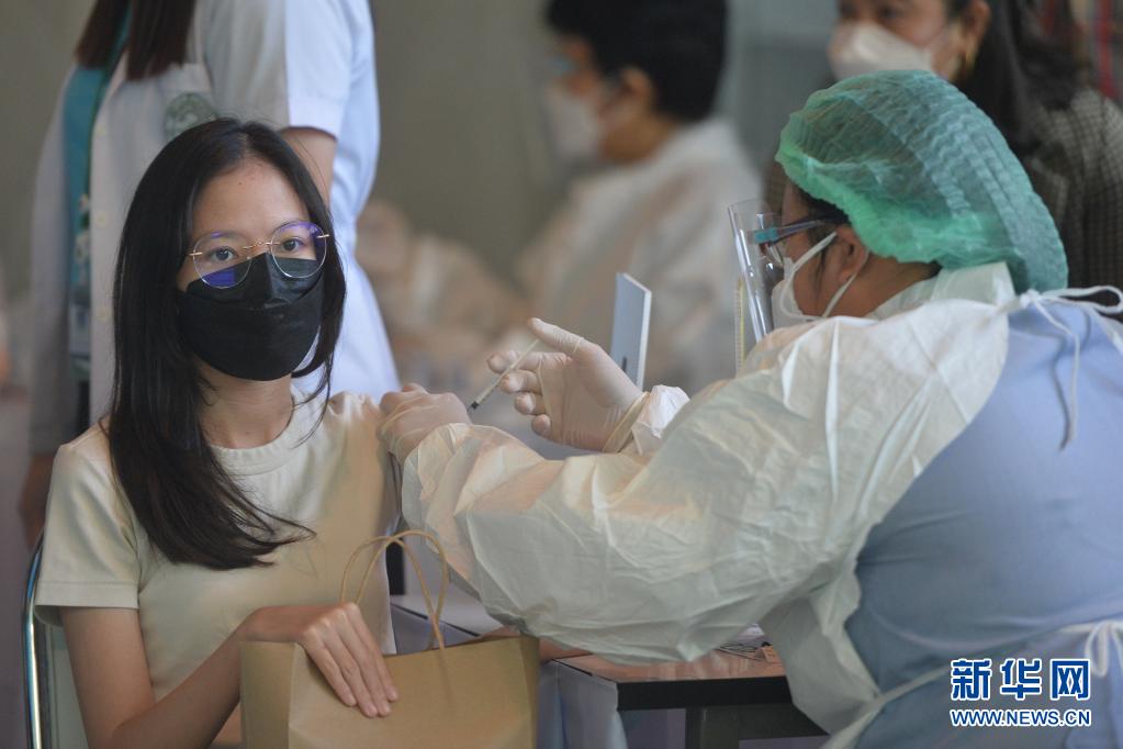 6月19日,一名女子在泰国北榄府一处新冠疫苗接种点接种疫苗。