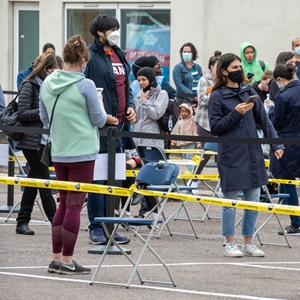 6月19日,人们在英国伦敦一家新冠疫苗接种中心外排队。