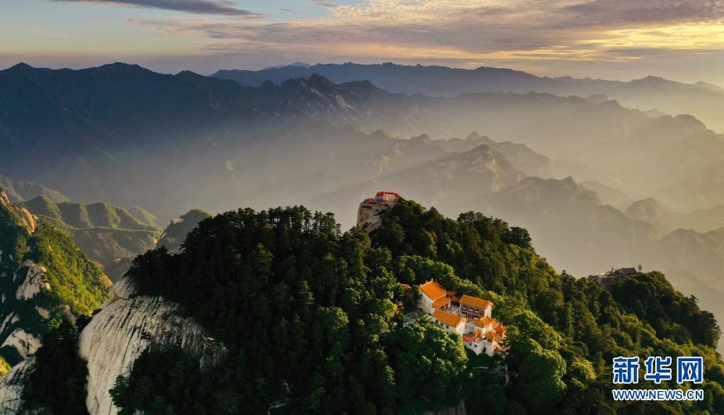 6月19日,晚霞映照着华山(无人机照片)。