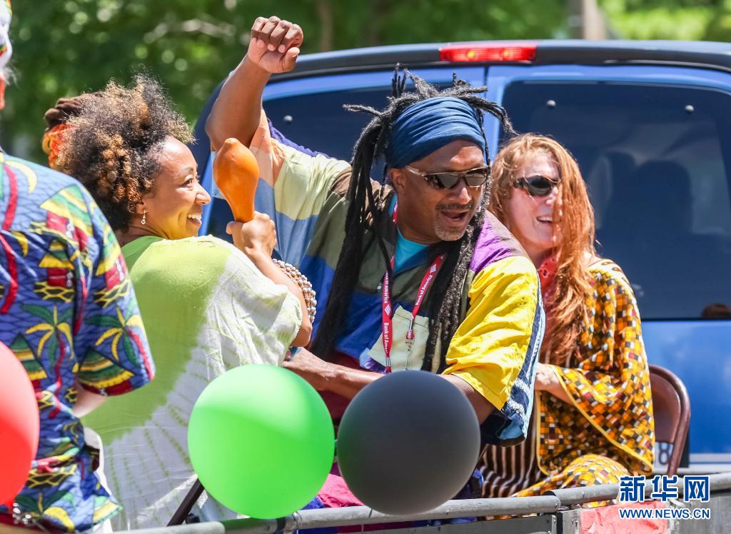 6月19日,民众在美国伊利诺伊州埃文斯顿参加六月节庆祝活动。