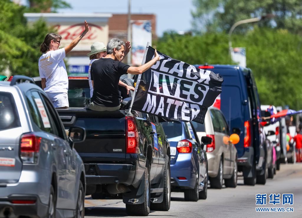 6月19日,民众在美国伊利诺伊州埃文斯顿参加六月节庆祝活动。新华社发(乔尔·莱纳摄)