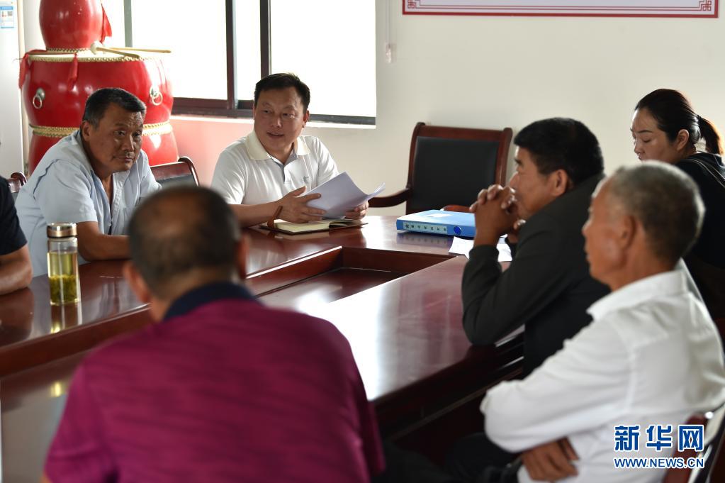 6月19日,郑加卫(后排右)和汪李村的工作人员一起开会讨论乡村建设情况。新华社记者 刘军喜 摄
