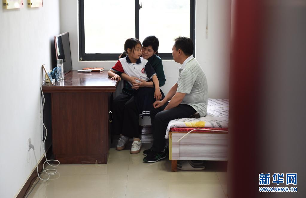 6月18日,楚思扬和父母在郑加卫的宿舍里聊天。新华社记者 韩旭 摄