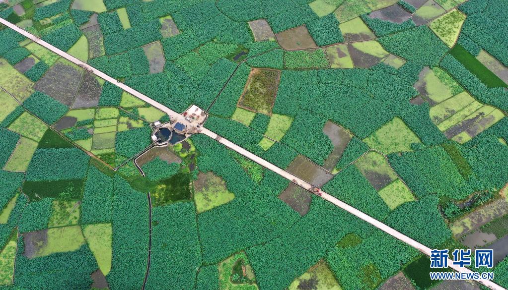 广西柳州市柳江区百朋镇万亩荷塘种植的春季莲藕迎来丰收。连日来,农民紧抓农时,抢收春藕、抢种夏藕,荷塘内一派繁忙景象。