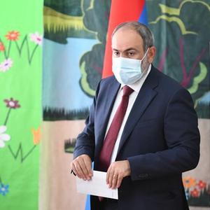 6月20日,亚美尼亚看守政府总理帕希尼扬在埃里温一家投票站参加议会选举投票。