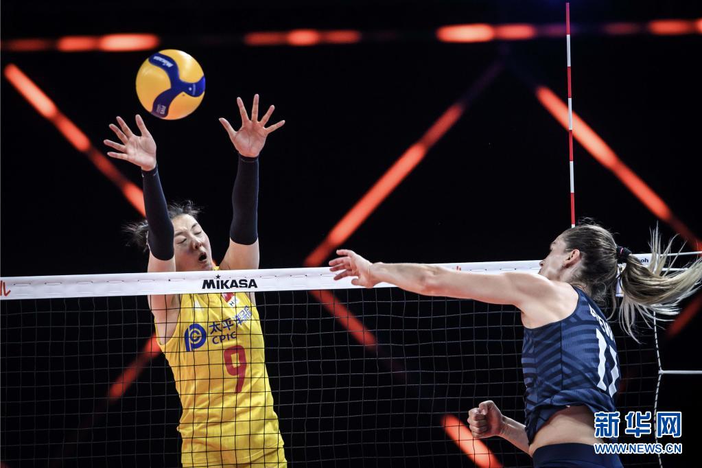 当日,在意大利里米尼举行的2021年世界女排联赛预赛比赛中,中国队以3比0战胜美国队。
