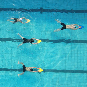 6月21日,游泳爱好者在沙河市二十冶游泳池游泳(无人机照片)。