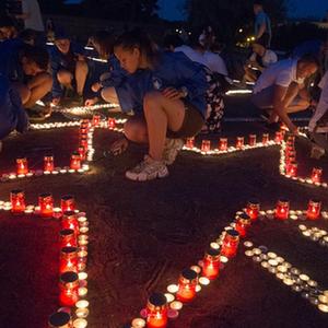 6月22日凌晨,人们在俄罗斯圣彼得堡战神广场点亮蜡烛,形成“保卫列宁格勒”的图案,纪念卫国战争爆发80周年。