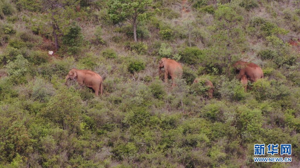 6月22日在云南省玉溪市峨山县大龙潭乡附近拍摄的象群(无人机视频截图)。