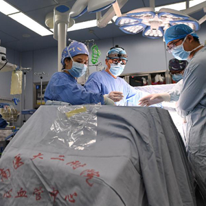 6月23日,在南京医科大学第二附属医院,医护人员在给4岁的朋毛吉做手术。