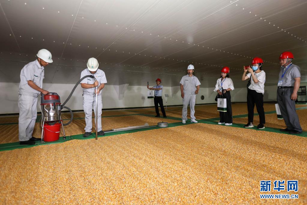 6月24日,保管员在一处存放玉米的粮仓内为公众展示扦样作业,以此了解粮食水分、杂质以及虫害等情况,实现对粮食安全的跟踪检查。