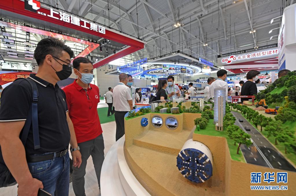 6月24日,在国家会展中心(天津)一期展馆,观众在参观城市地下综合管廊建设模型。