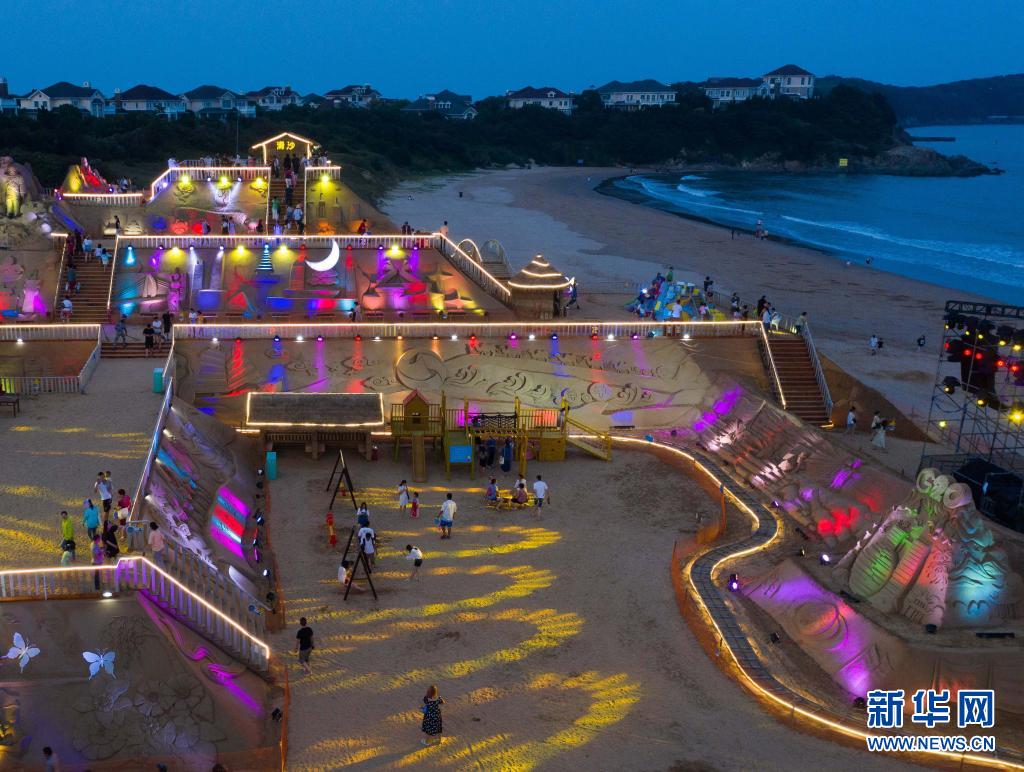 这是6月24日在舟山市朱家尖南沙景区拍摄的沙雕作品(无人机照片)。新华社记者 徐昱 摄