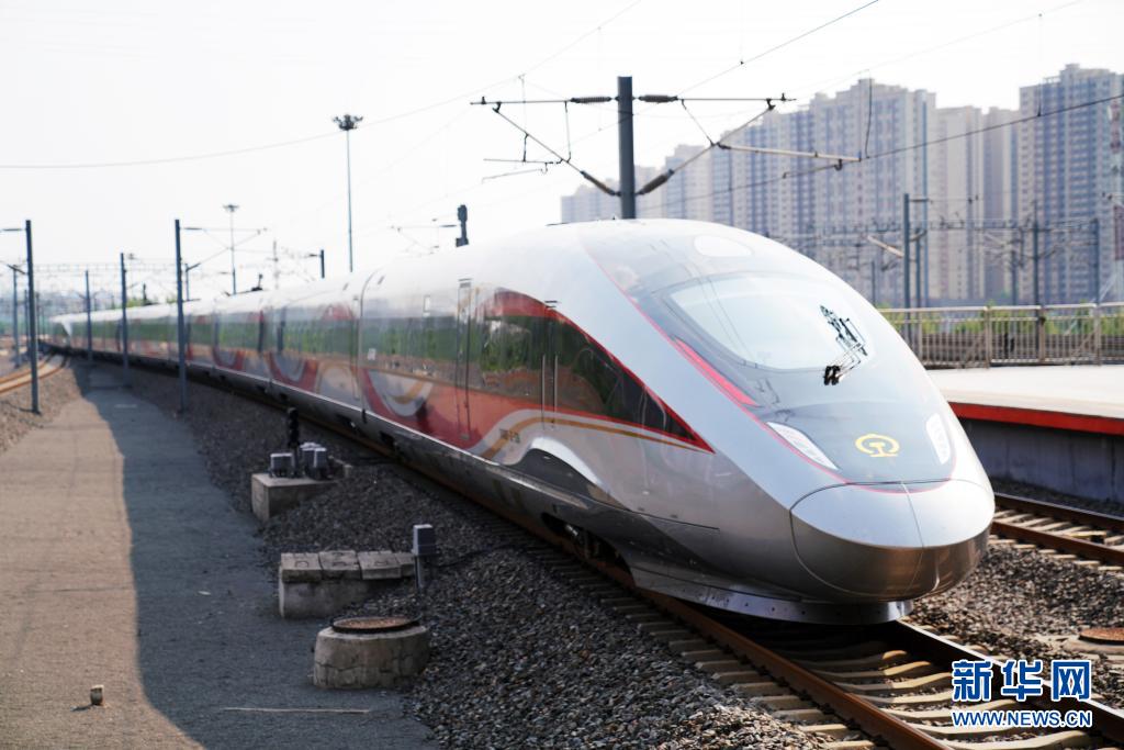 6月25日,由哈尔滨西站开往北京朝阳站方向的复兴号智能动车组G904次列车驶出哈尔滨西站。