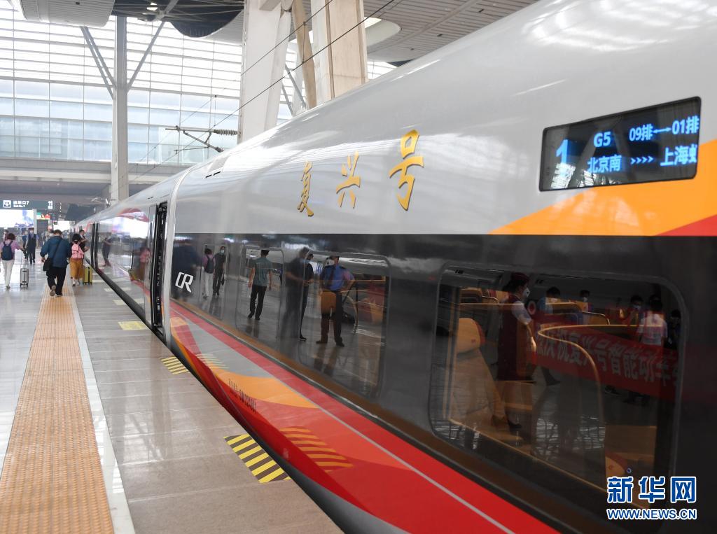 6月25日,复兴号智能动车组G5次列车停靠在北京南站。