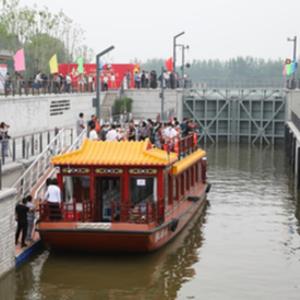 6月26日,游船停靠在北京市通州区甘棠船闸内。