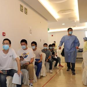 6月25日,一名女子在科威特大穆巴拉克省接种新冠疫苗。