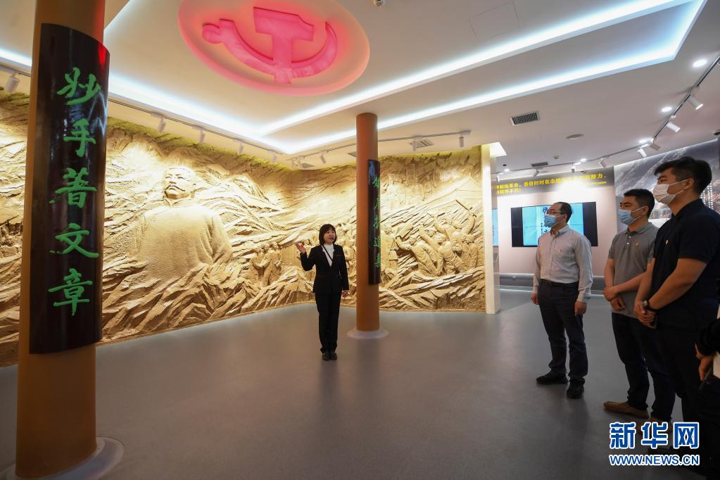 6月1日,在李大钊烈士陵园,讲解员为参观者介绍“不朽的功勋——李大钊生平事迹展”。新华社记者 陈钟昊 摄