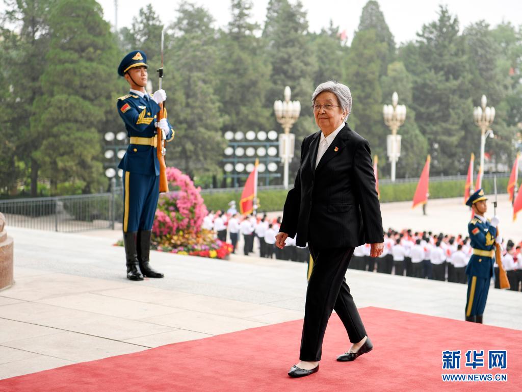 这是黄宝妹抵达人民大会堂。