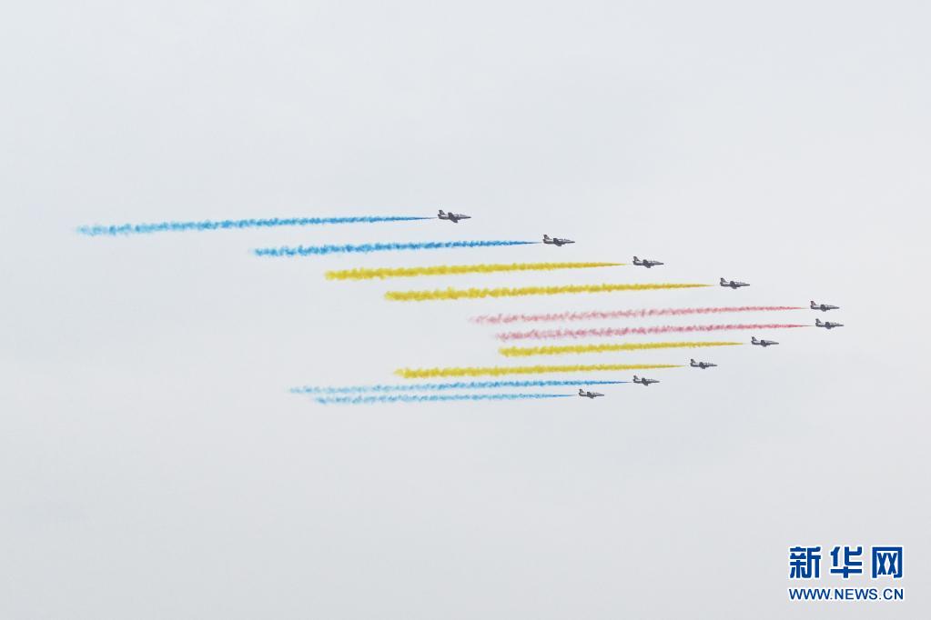 7月1日上午,庆祝中国共产党成立100周年大会在北京天安门广场隆重举行。这是大会开始前的飞行庆祝表演。