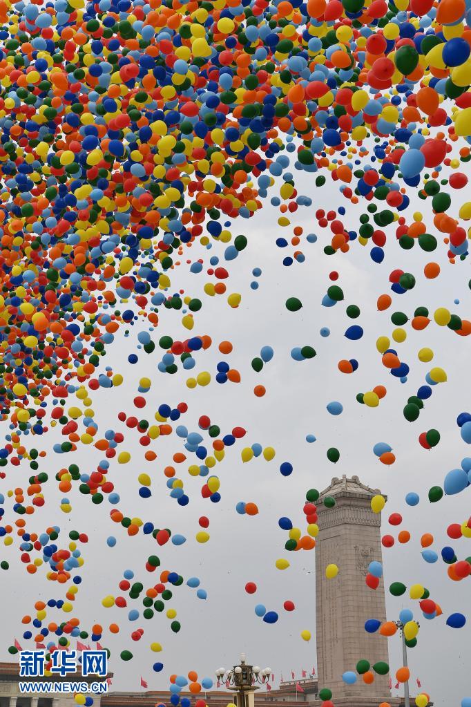 7月1日上午,庆祝中国共产党成立100周年大会在北京天安门广场隆重举行。这是庆祝大会现场气球腾空而起。