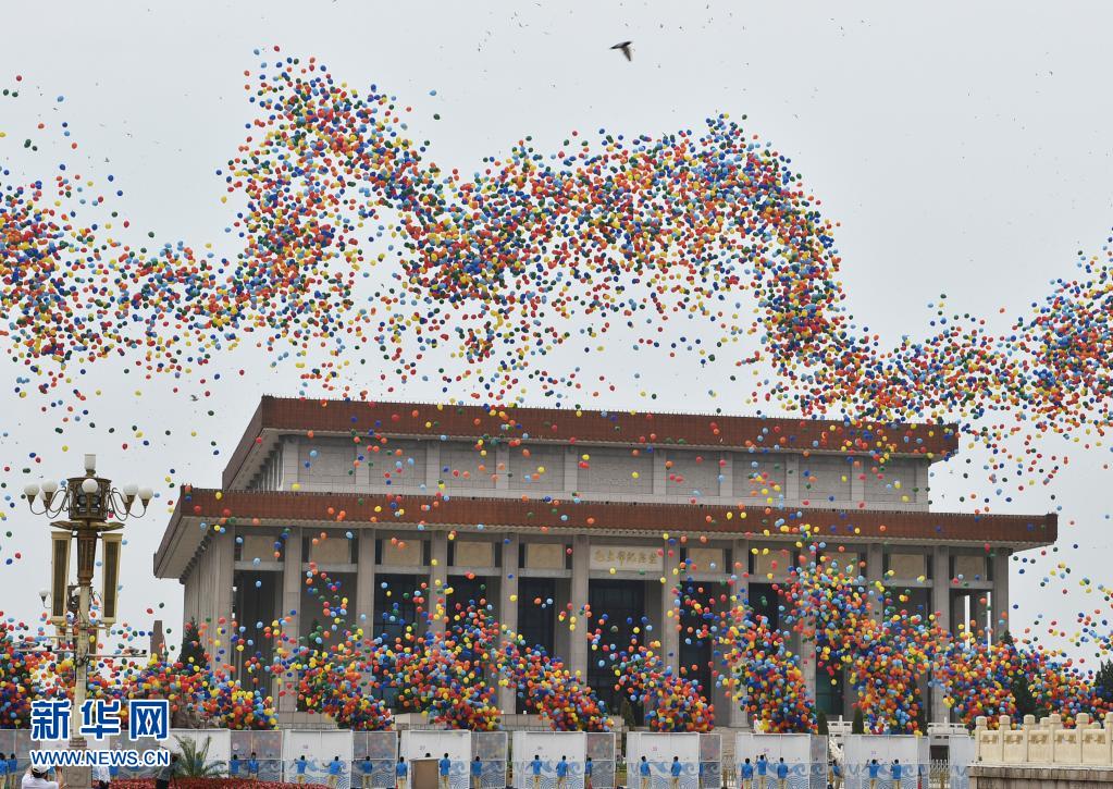 7月1日上午,庆祝中国共产党成立100周年大会在北京天安门广场隆重举行。这是庆祝大会现场气球腾空而起。