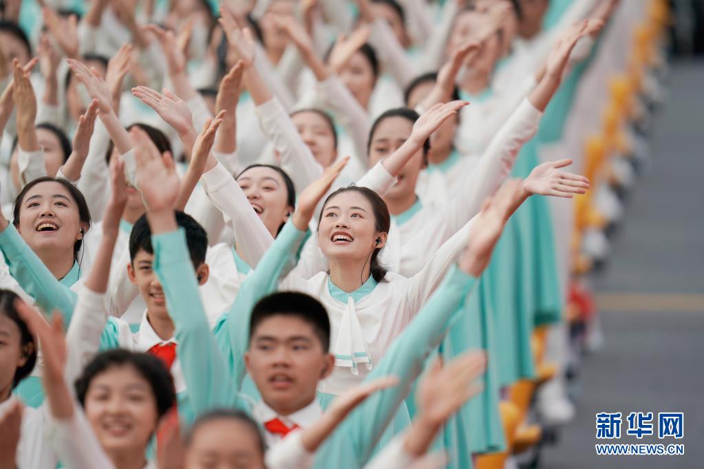 7月1日上午,庆祝中国共产党成立100周年大会在北京天安门广场隆重举行。这是合唱团在大会开始前演唱。