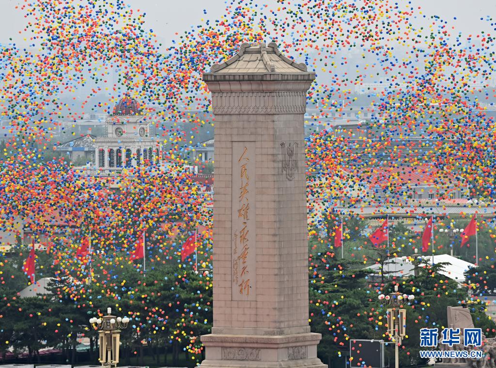 7月1日上午,庆祝中国共产党成立100周年大会在北京天安门广场隆重举行。这是庆祝大会现场放飞气球。