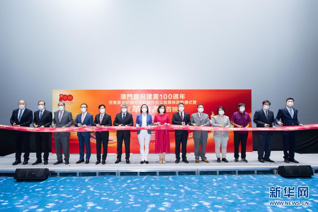 7月1日,嘉宾在“澳门庆祝建党100周年百集党史纪录片及影视作品公益展映启动仪式暨《革命者》首映”剪彩仪式上。