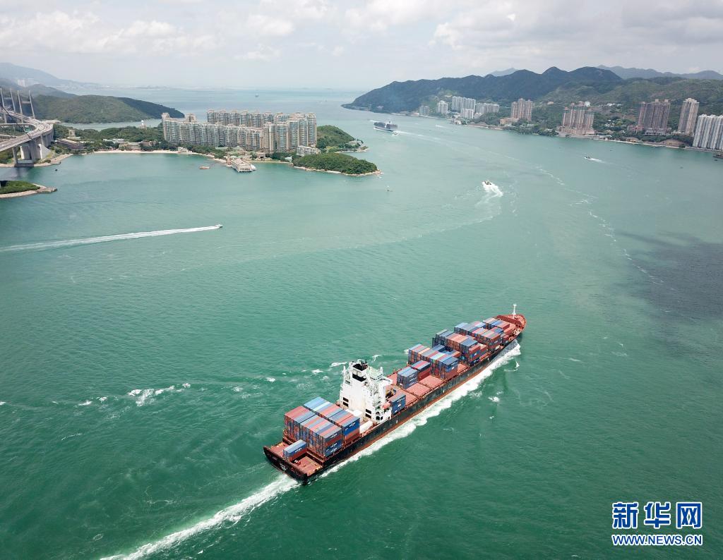 香港汀九桥附近,一艘货轮驶向码头(6月11日,无人机照片)。