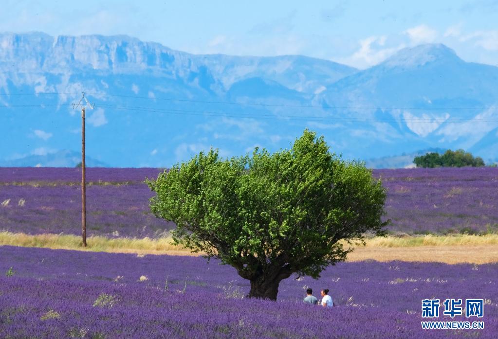 7月1日,人们在法国南部瓦朗索勒欣赏薰衣草花田。
