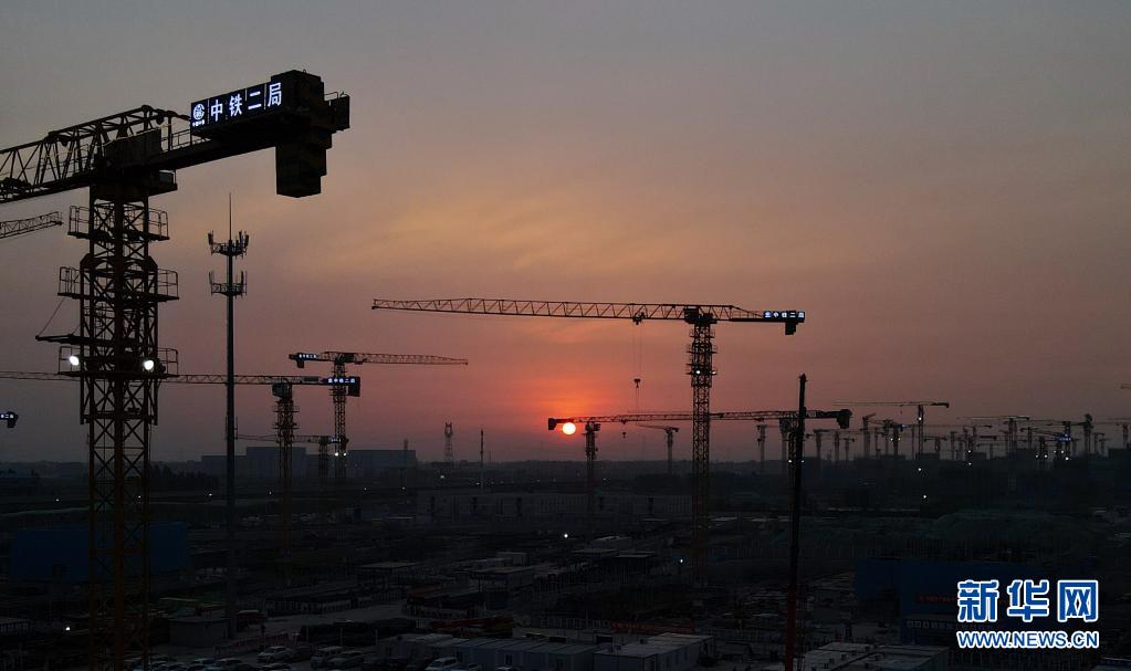 晨光下的雄安新区容西片区建设现场(7月1日摄,无人机照片)。