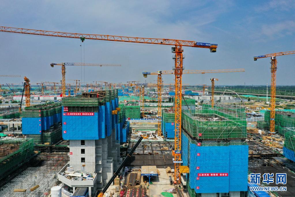 这是雄安新区容西片区建设现场(7月3日摄,无人机照片)。