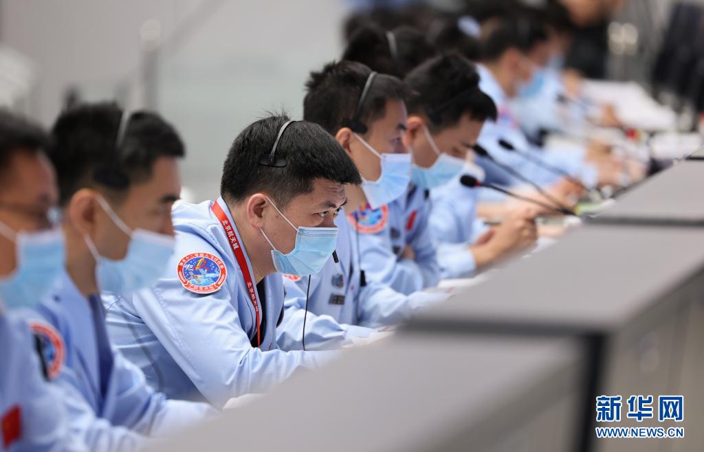 7月4日,在北京航天飞行控制中心,航天科研人员在紧张工作。