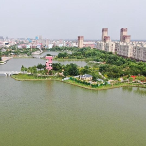 黄骅市集蓄水和城市景观功能于一体的西湖公园(7月4日摄,无人机照片)。