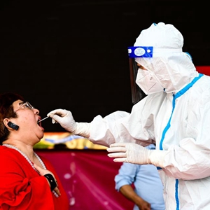 7月5日,防疫人员为市民进行核酸检测。