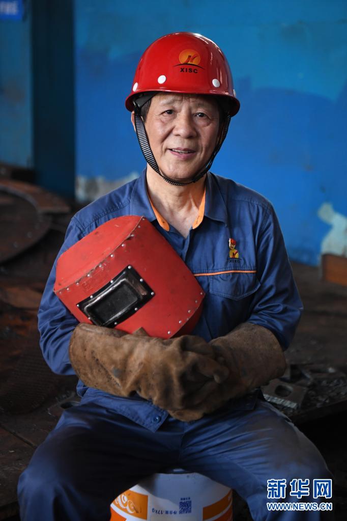 这是6月12日在湖南华菱湘潭钢铁有限公司厂房内拍摄的艾爱国。