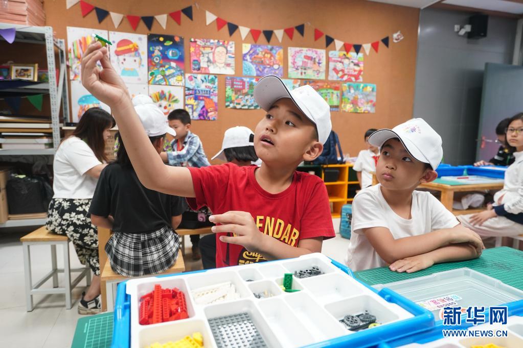 7月5日,在南京市长江路小学,孩子们在爱心公益暑托班上课。