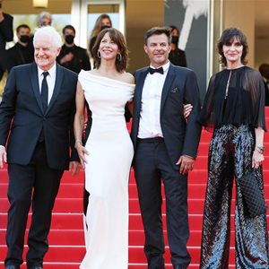 7月7日,在法国戛纳,(从左到右)演员安德烈·迪索利耶、苏菲·玛索、导演弗朗索瓦·欧容、演员热拉尔迪娜·帕亚出席影片《一切顺利》的首映式。 《一切顺利》将与其他主竞赛单元影片一起角逐最佳影片“金棕榈奖”。第74届法国戛纳国际电影节于6日至17日举行。 新华社记者 高静 摄