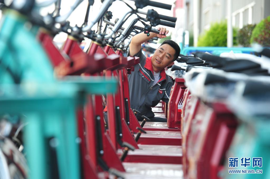 7月8日,工人在任丘市一家企业检验新下线的电动三轮摩托车。