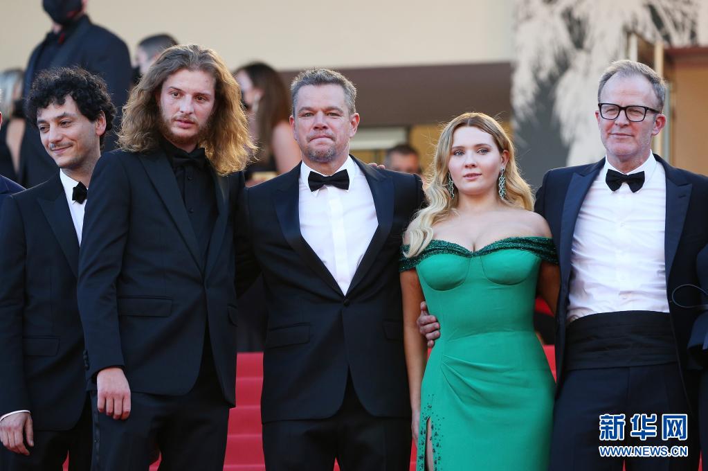 7月8日,在法国戛纳,导演汤姆·麦卡锡(右一)、演员马特·达蒙(中)等主创人员亮相非竞赛单元影片《止水》的首映式红毯。