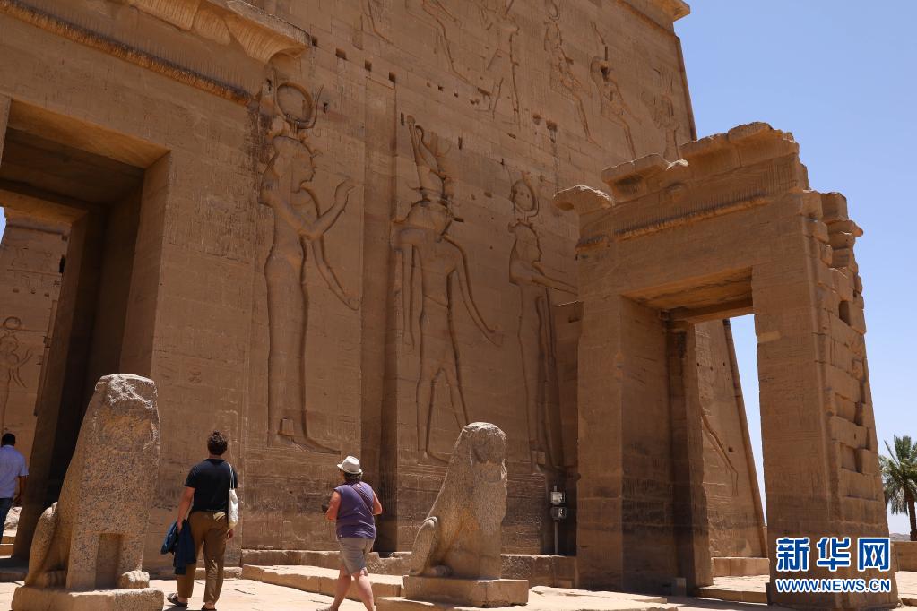 6月26日,游客在位于埃及南部阿斯旺省的菲莱神庙参观。