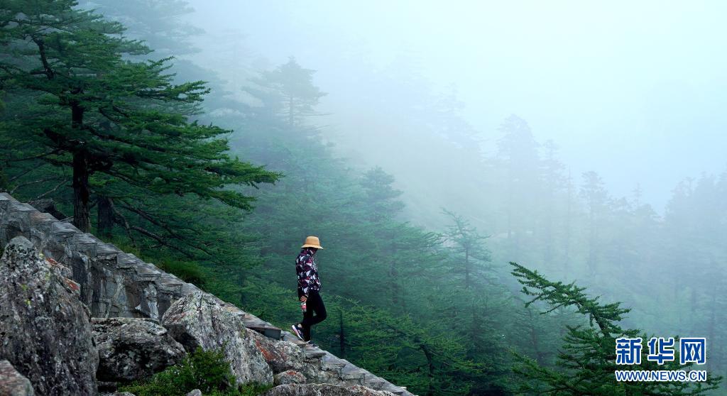 7月8日,游客在陕西朱雀国家森林公园内游览。