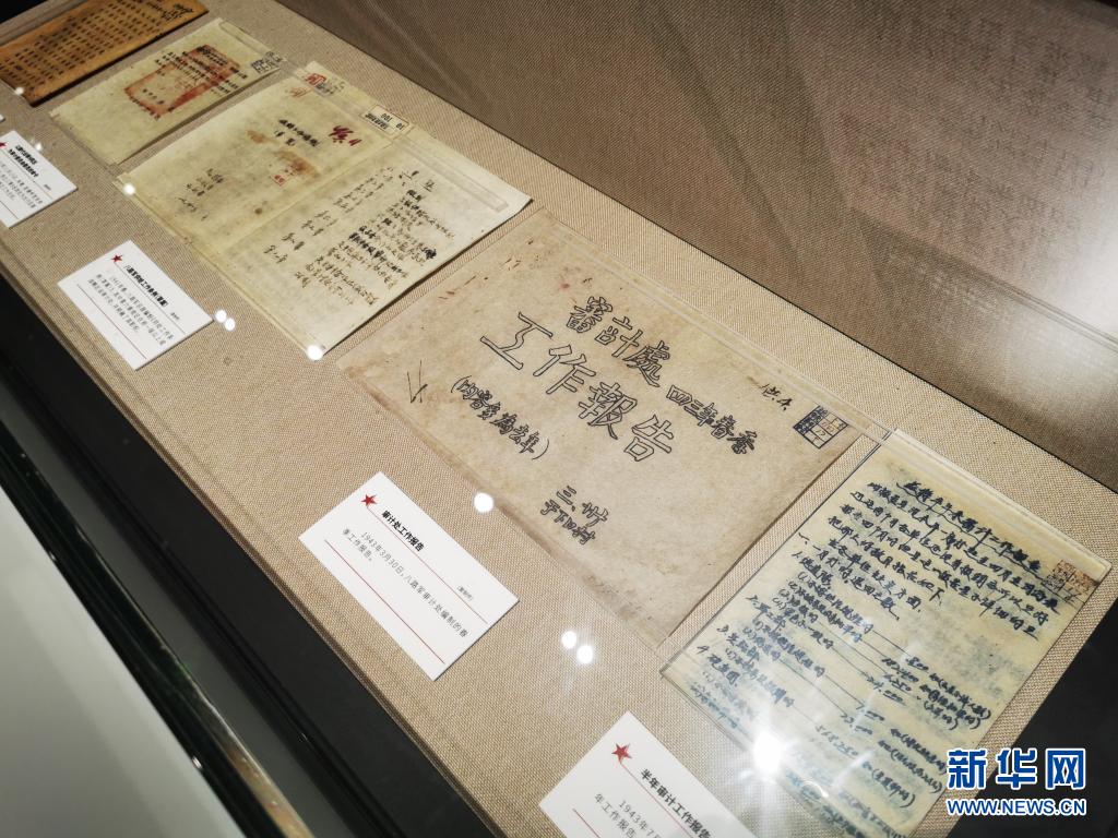 这是7月7日拍摄的抗日战争时期的审计工作报告等文件复制件。